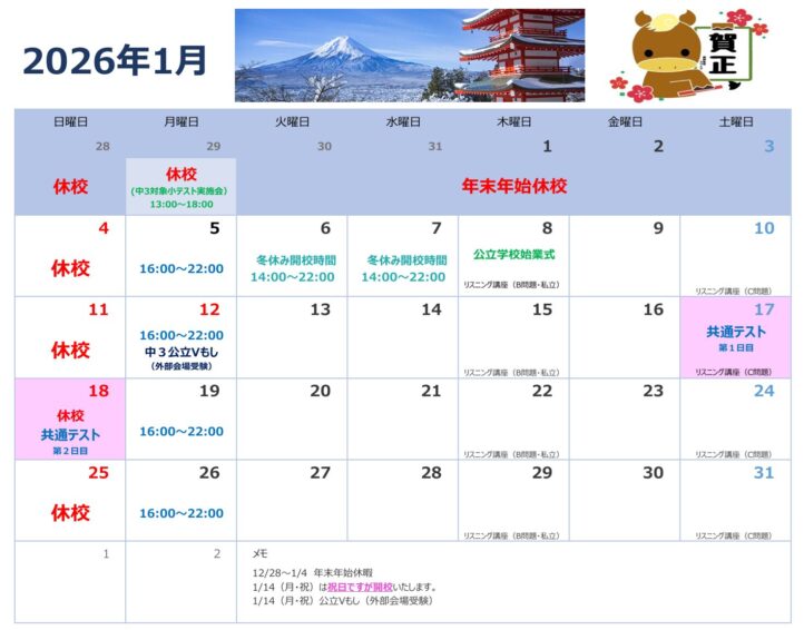 冬期講習会受付開始(11月5日~)